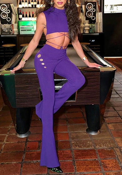 (Purple)2023 Styles Women Sexy&Fashion Spring&Summer TikTok&Instagram Styles Cut Out Two Piece SuitSKU: #CF77189-2