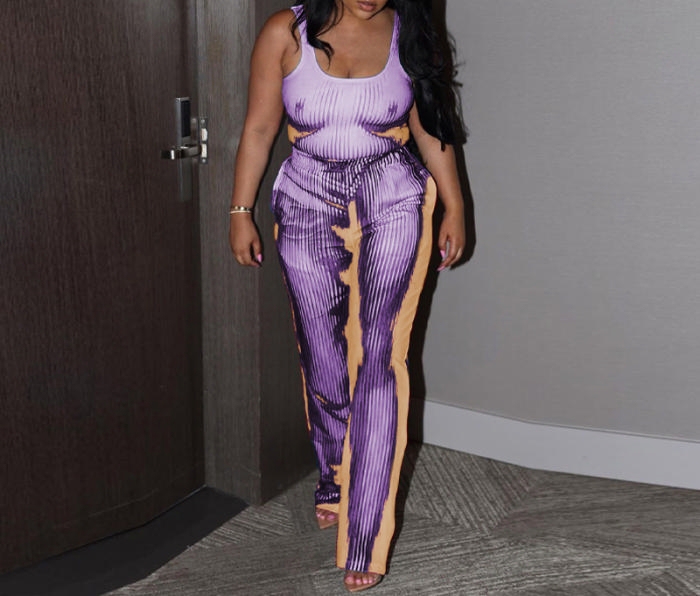 (Purple)2023 Styles Women Sexy&Fashion Spring&Summer TikTok&Instagram Styles Print Two Piece SuitSKU: #CF88052-3
