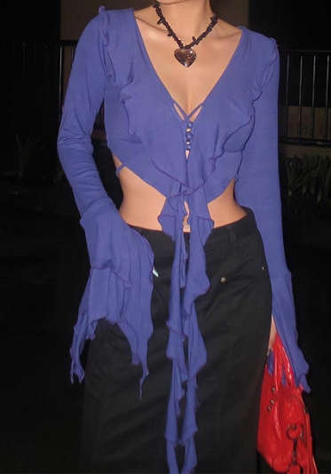 (Purple)2023 Styles Women Sexy&Fashion Spring&Summer TikTok&Instagram Styles Ruffle Long Sleeve ShirtsSKU: #OM419-2