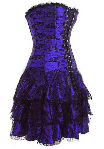 Purple Lace Flower Bandage Satin OverBust Bustiers & CorsetsSKU: #QX10028-1