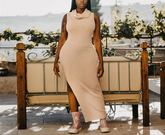(Real Image)2021 Styles Women Fashion Fall & Winter INS Styles Fashion Solid Color Maxi DressSKU: #CF48398-2