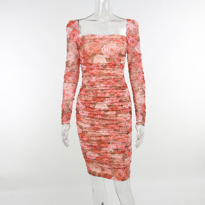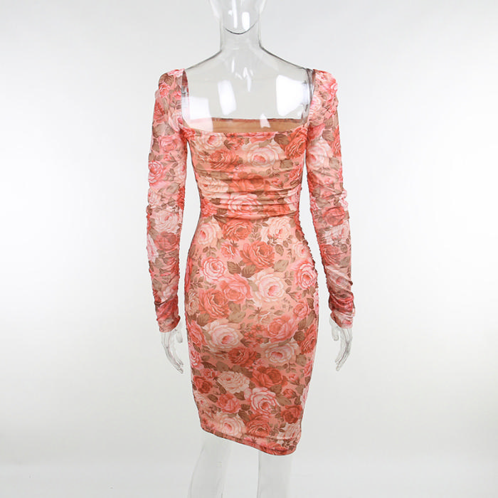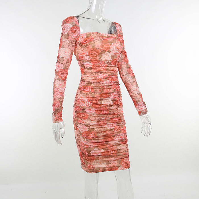 (Real Image)2021 Styles Women Fashion Fall & Winter INS Styles Floral Long Sleeve Ruffle Mini DressSKU: #XF92419-1