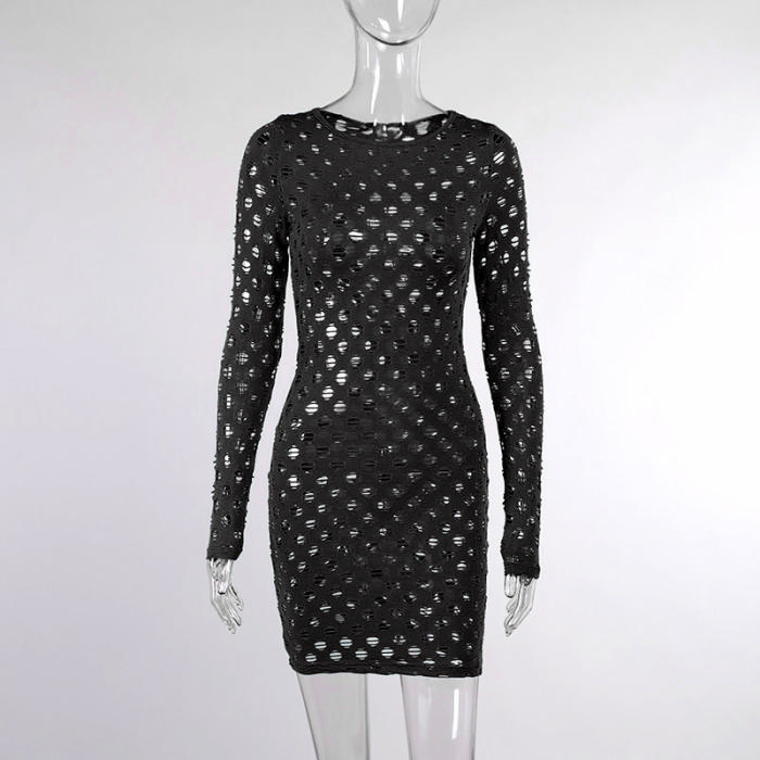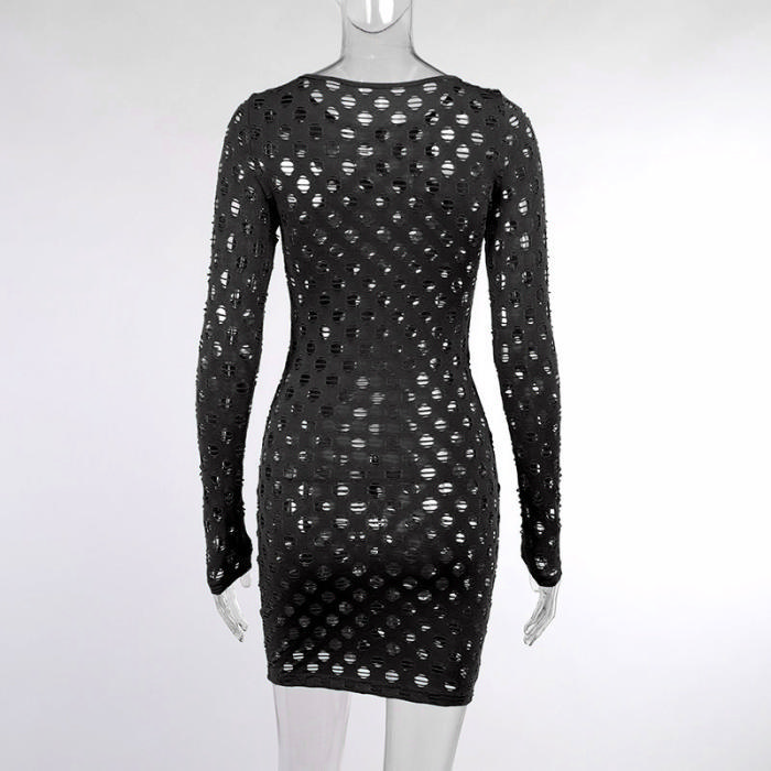 (Real Image)2021 Styles Women Fashion Fall & Winter INS Styles Hollow Nes Mini DressSKU: #XF92426-2