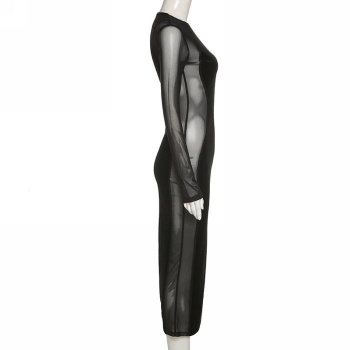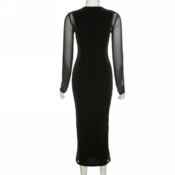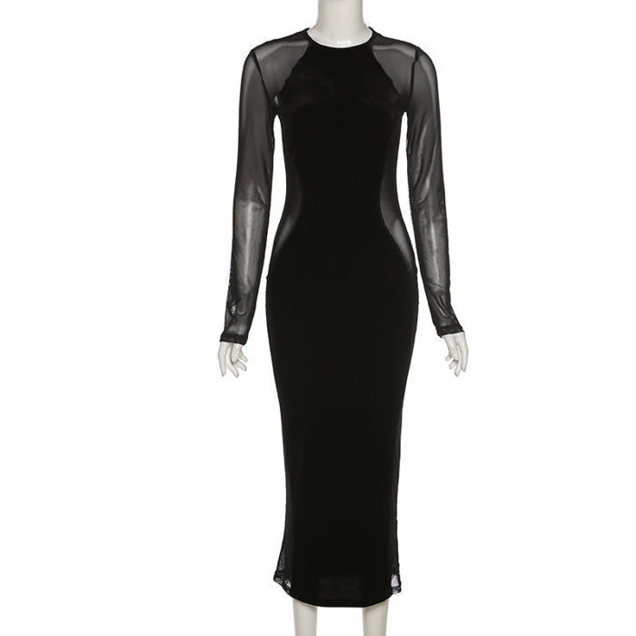 (Real Image)2021 Styles Women Fashion Fall & Winter INS Styles Mesh Maxi DressSKU: #CF48410-1