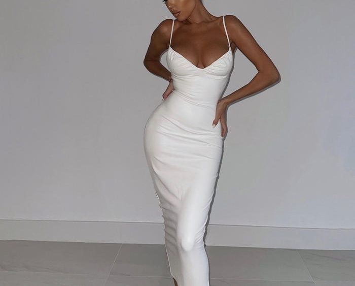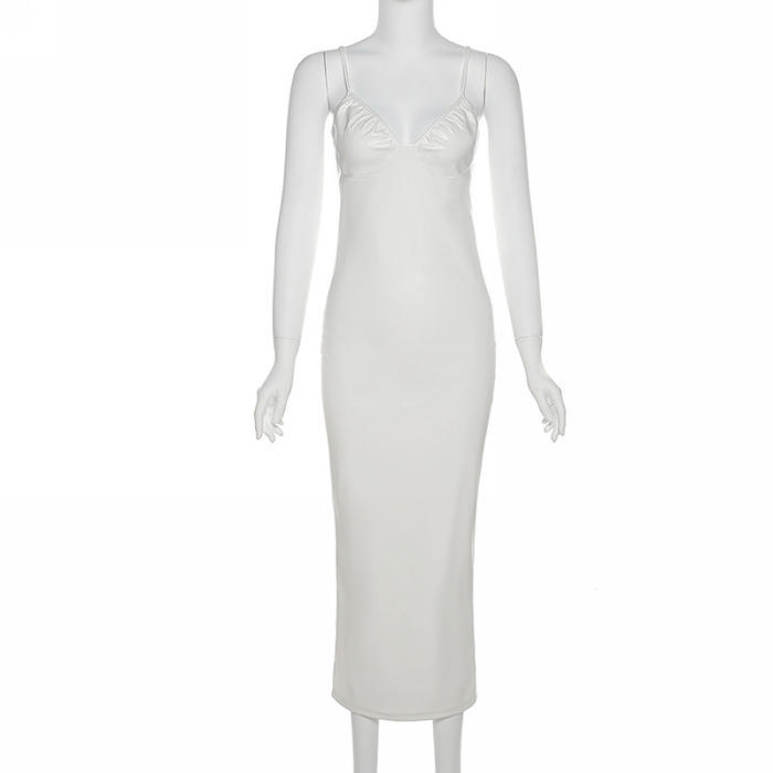 (Real Image)2021 Styles Women Fashion Fall & Winter INS Styles PU Maxi DressSKU: #CF48476-1