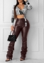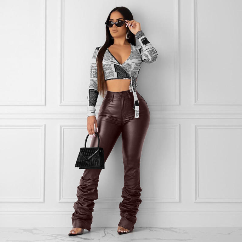 (Real Image)2021 Styles Women Fashion Fall & Winter INS Styles PU Wine red pantsSKU: #OEM5070-3