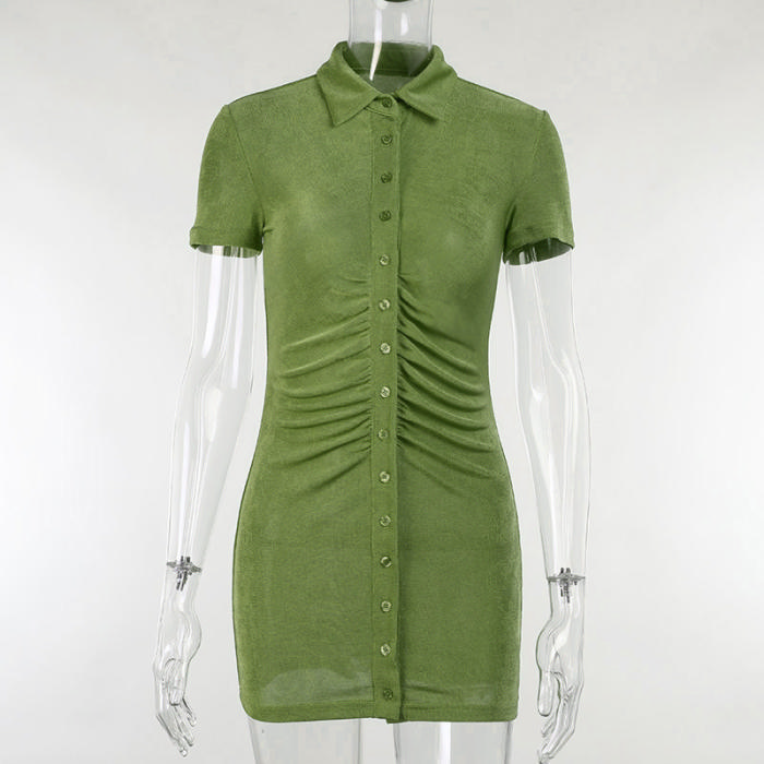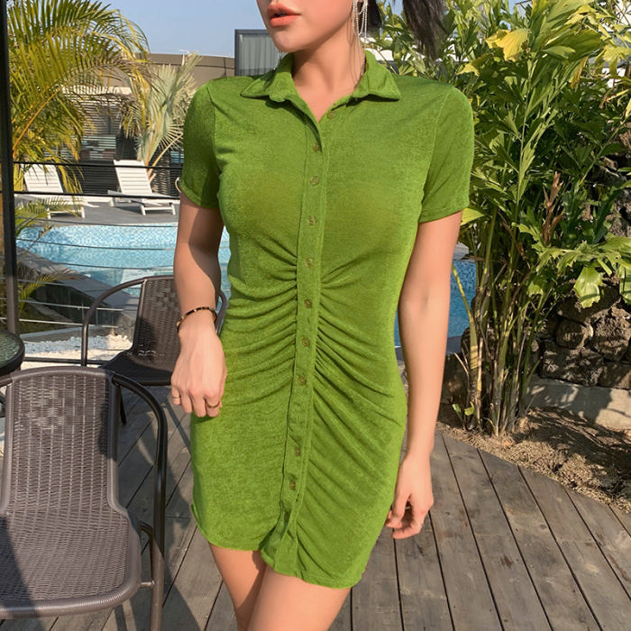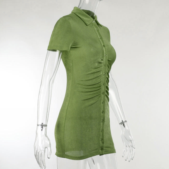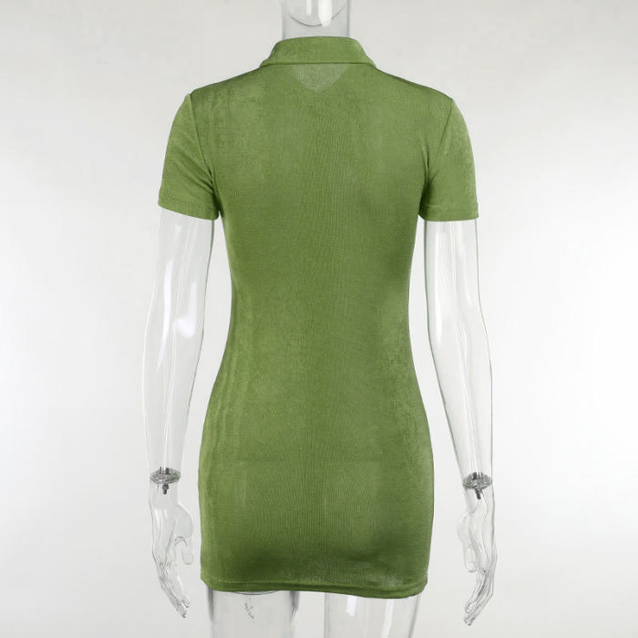 (Real Image)2021 Styles Women Fashion Fall & Winter INS Styles Short Sleeve Front Zipper Mini DressSKU: #XF92416-2