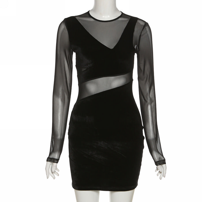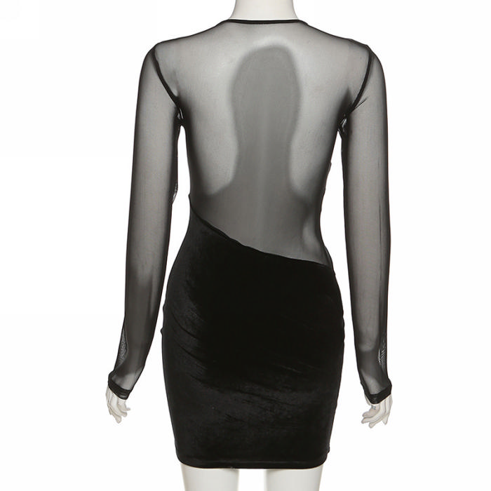 (Real Image)2021 Styles Women Sexy Mesh Fall & Winter INS Styles Long Sleeve Mini DressSKU: #OM0106-1