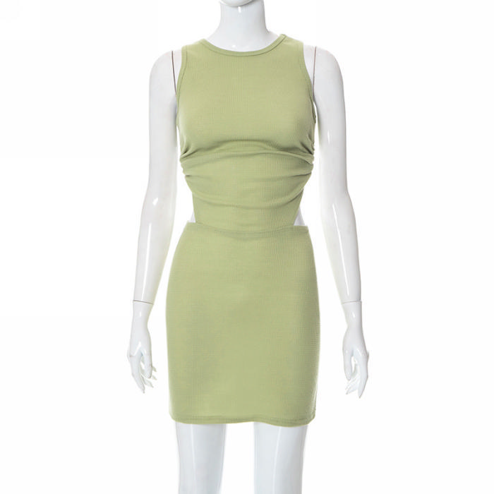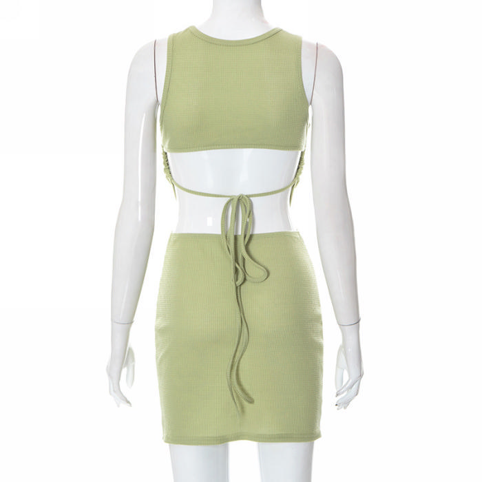 (Real Image)2022 Styles Women Fashion INS Styles Backless Green Mini DressSKU: #CF73003-1