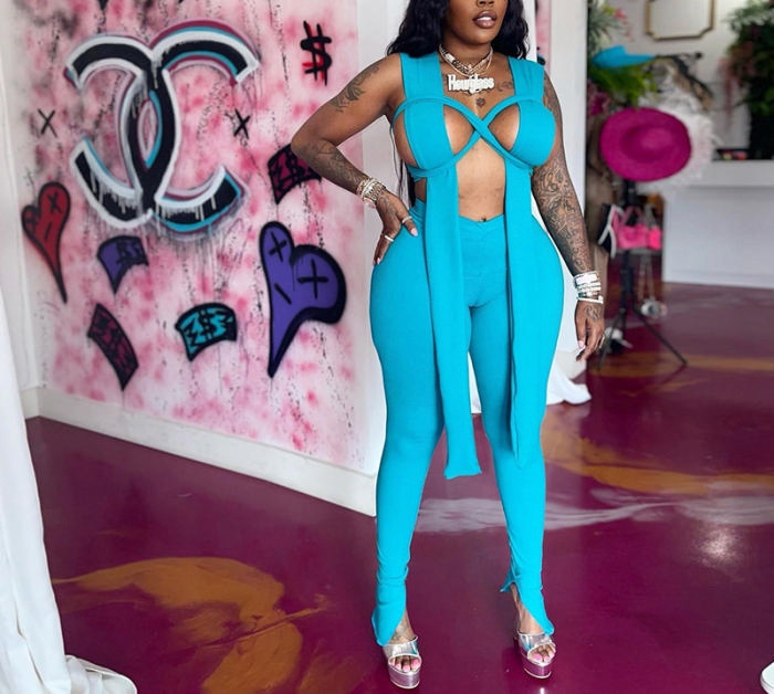 (Real Image)2022 Styles Women Fashion INS Styles Bandage Two Piece SuitSKU: #CF49670-1