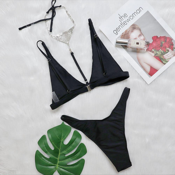 (Real Image)2022 Styles Women Fashion INS Styles Black 3 Piece SwimsuitSKU: #CF70033-1