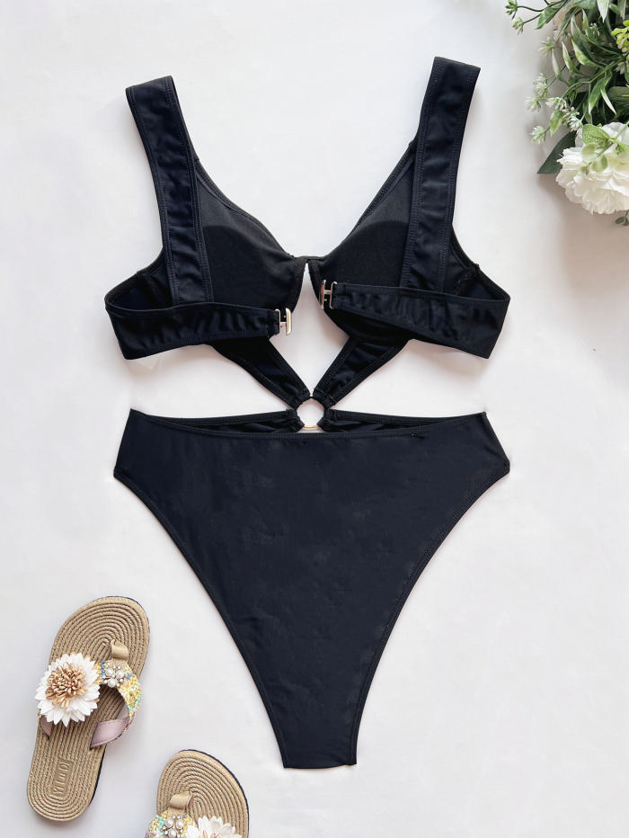 (Real Image)2022 Styles Women Fashion INS Styles Black Bandage One Piece SwimwearSKU: #CF60039-1