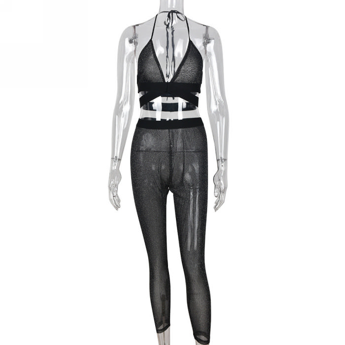 (Real Image)2022 Styles Women Fashion INS Styles Black Bra+Long Pants Two Piece SuitSKU: #RO006-1