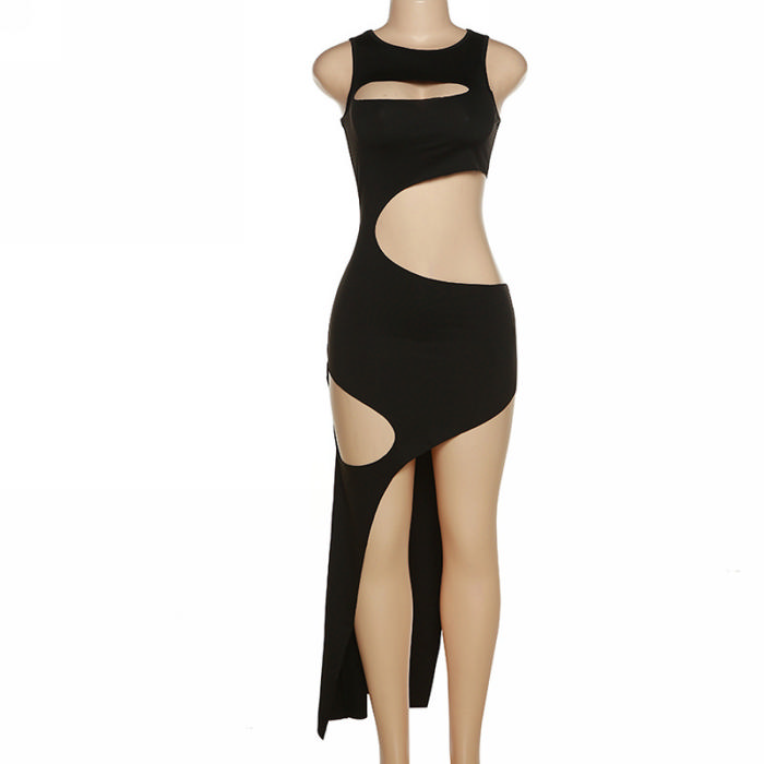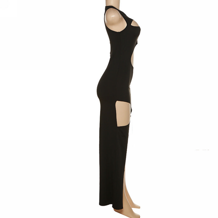 (Real Image)2022 Styles Women Fashion INS Styles Black Cut Out Maxi DressSKU: #CF48721-1