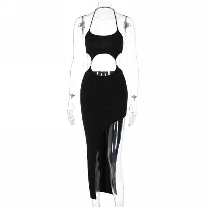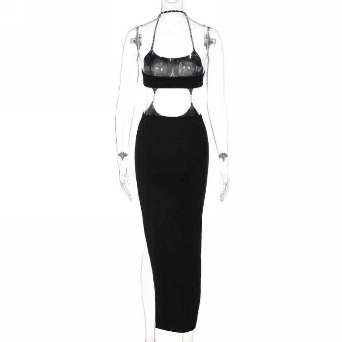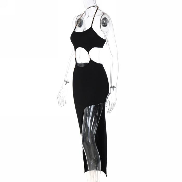 (Real Image)2022 Styles Women Fashion INS Styles Black Cut Out Maxi DressSKU: #CF22681-1