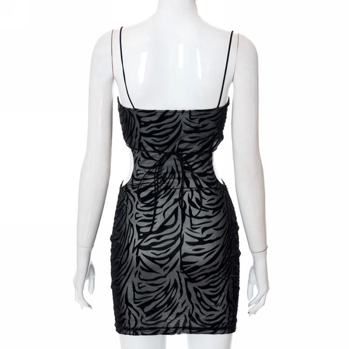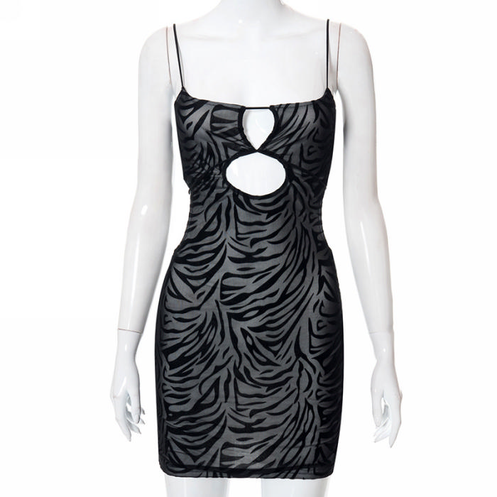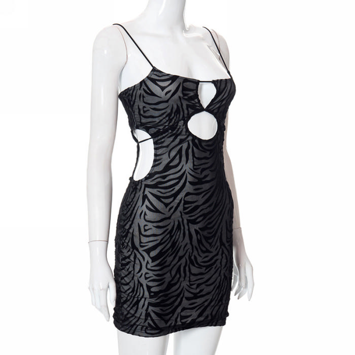 (Real Image)2022 Styles Women Fashion INS Styles Black Cut Out Mesh Club DressSKU: #CF68010-1