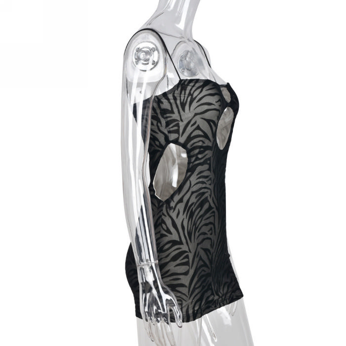 (Real Image)2022 Styles Women Fashion INS Styles Black Cut Out Strap Mini DressSKU: #CF59075-1