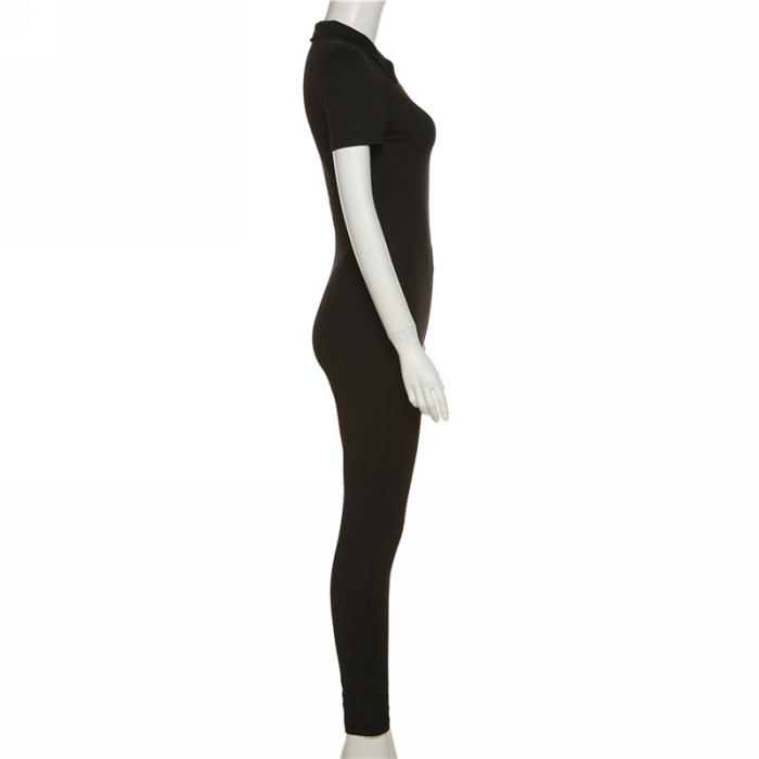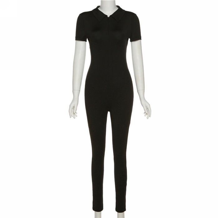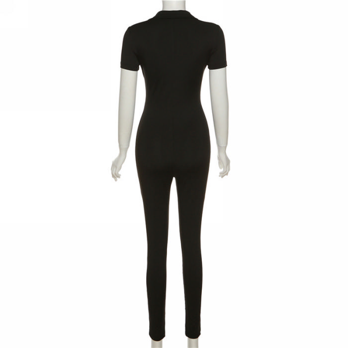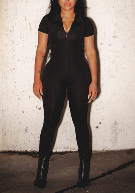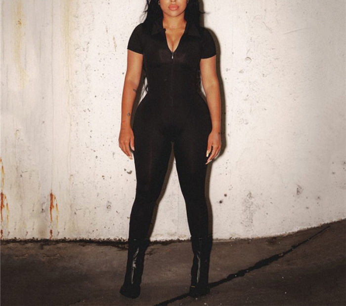 (Real Image)2022 Styles Women Fashion INS Styles Black Front Zipper JumpsuitSKU: #CF49777-1