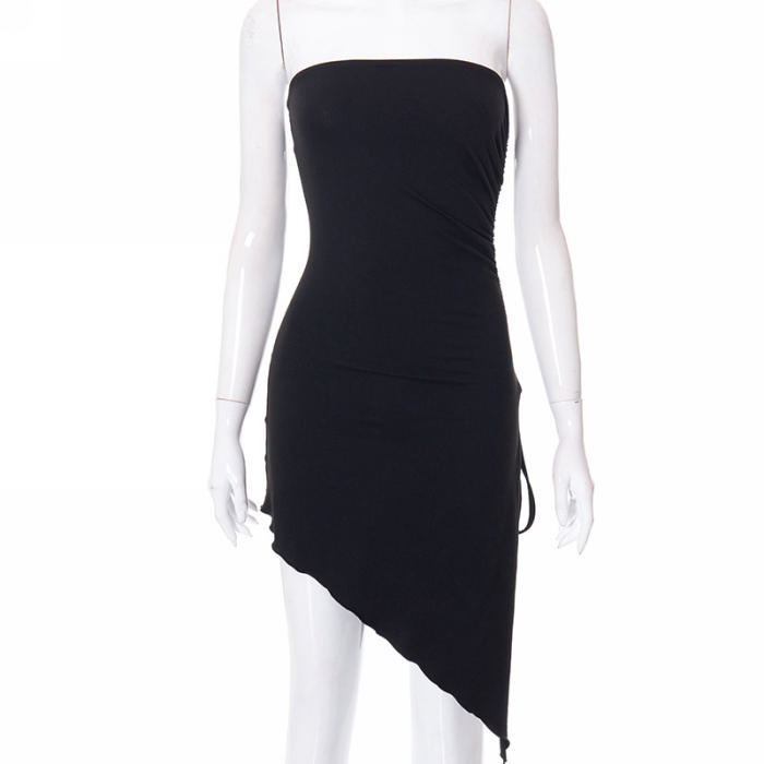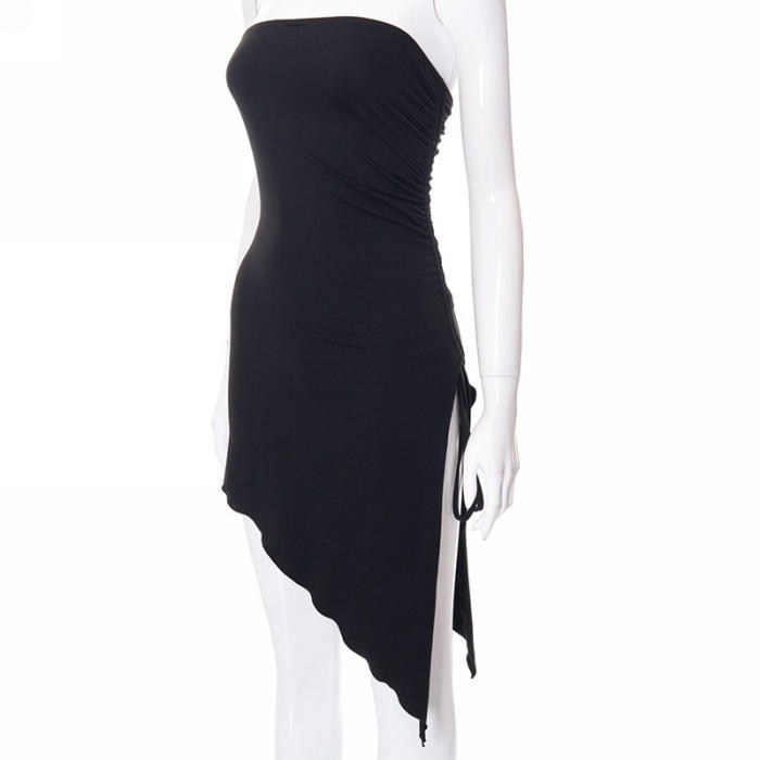 (Real Image)2022 Styles Women Fashion INS Styles Black Irregular Tube Club DressSKU: #CF73005-1