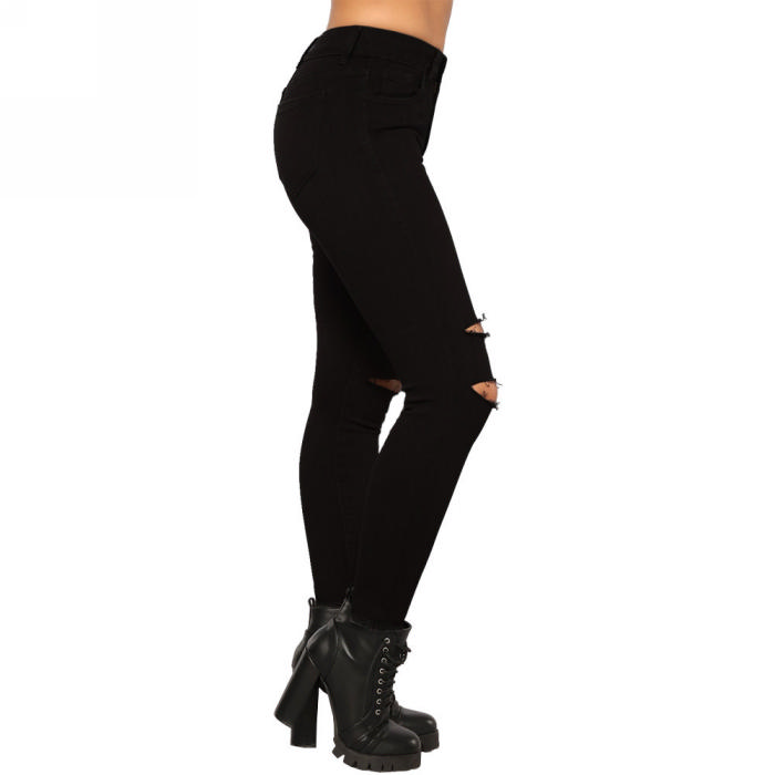 (Real Image)2022 Styles Women Fashion INS Styles Black Jeans Ripped Long PantsSKU: #XF03010-1