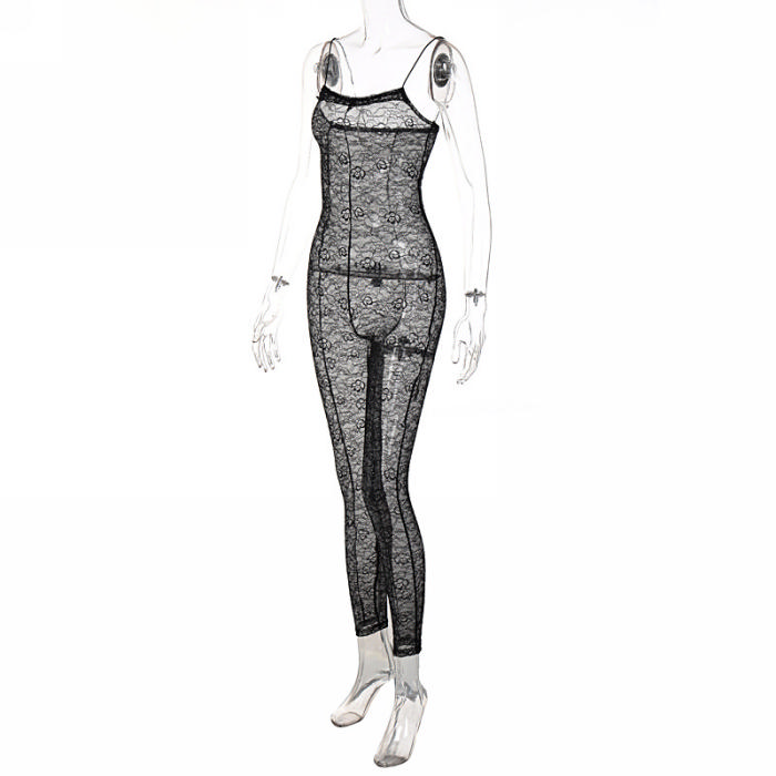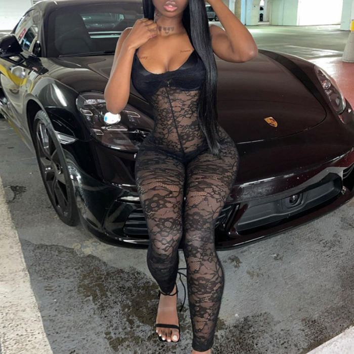 (Real Image)2022 Styles Women Fashion INS Styles Black Lace JumpsuitSKU: #CF22611-1