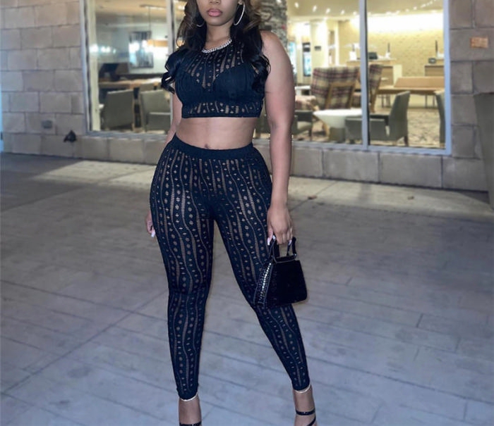 (Real Image)2022 Styles Women Fashion INS Styles Black Lace Two Piece SuitSKU: #CF49693-1
