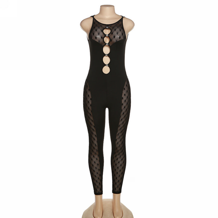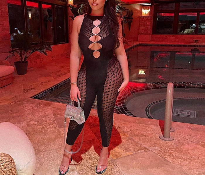(Real Image)2022 Styles Women Fashion INS Styles Black Mesh JumpsuitSKU: #CF49756-1