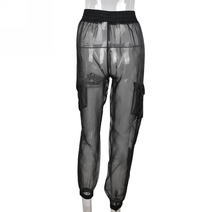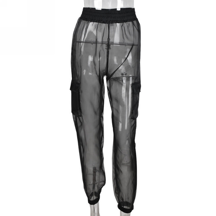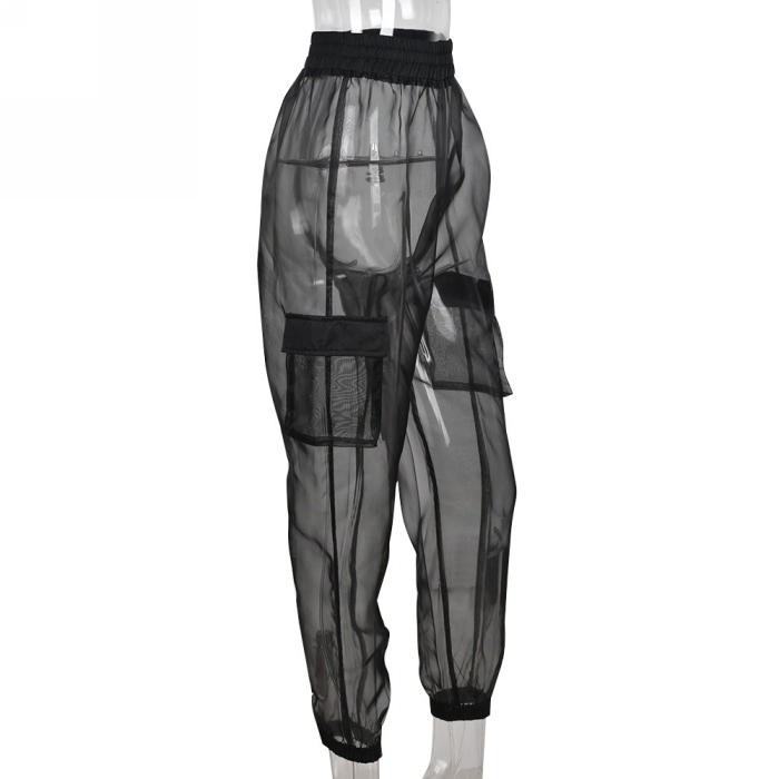 (Real Image)2022 Styles Women Fashion INS Styles Black Mesh Long PantsSKU: #CF59089-1