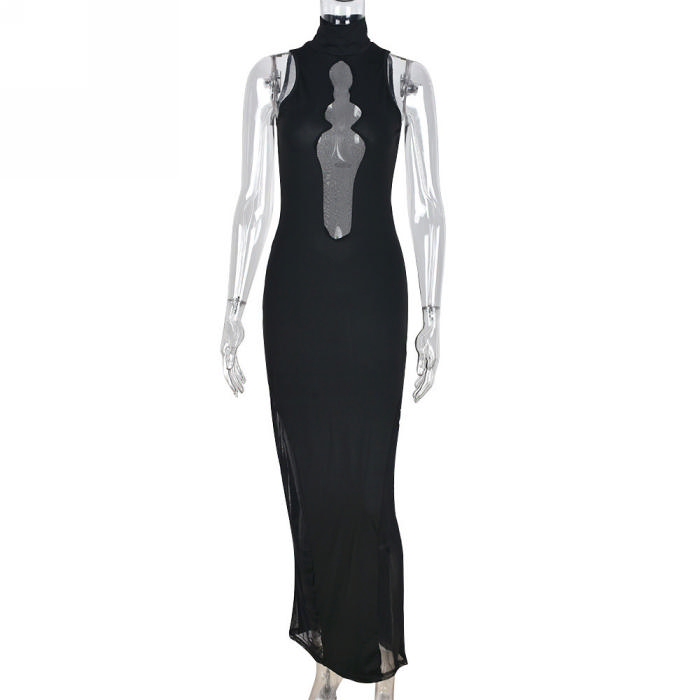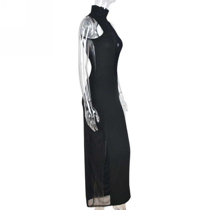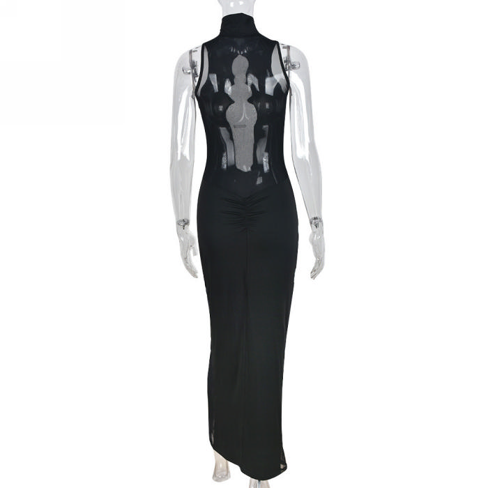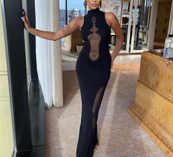 (Real Image)2022 Styles Women Fashion INS Styles Black Mesh Maxi DressSKU: #CF59138-1