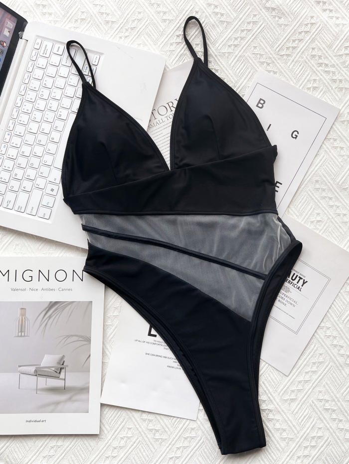 (Real Image)2022 Styles Women Fashion INS Styles Black Mesh One Piece SwimwearSKU: #CF55051-1