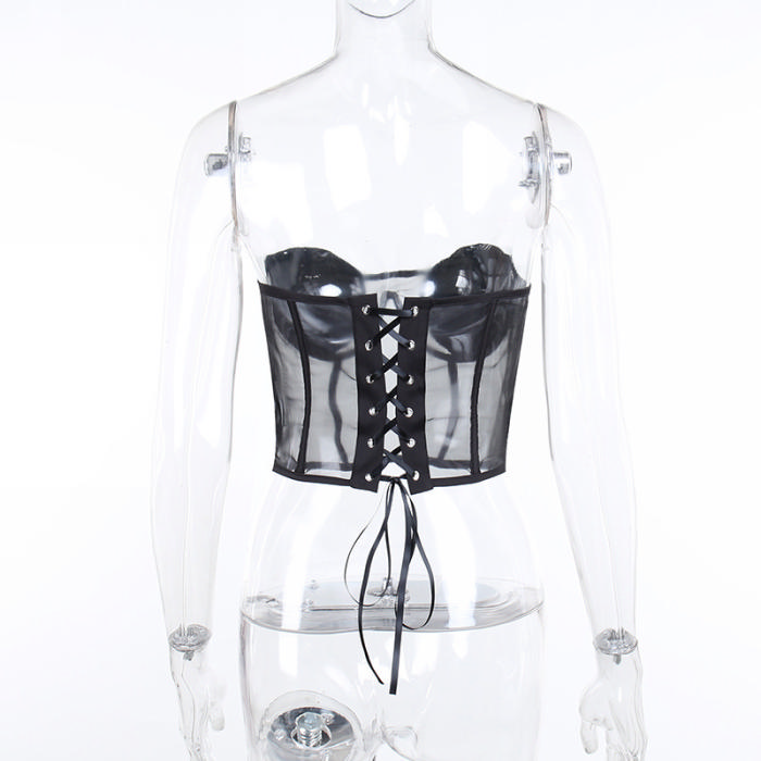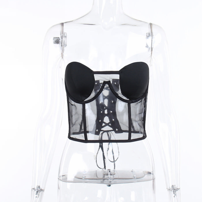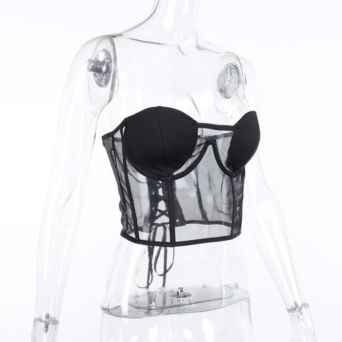 (Real Image)2022 Styles Women Fashion INS Styles Black Mesh Tank TopsSKU: #XF92558-1