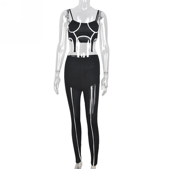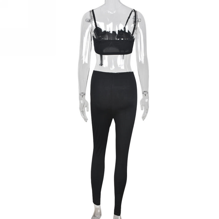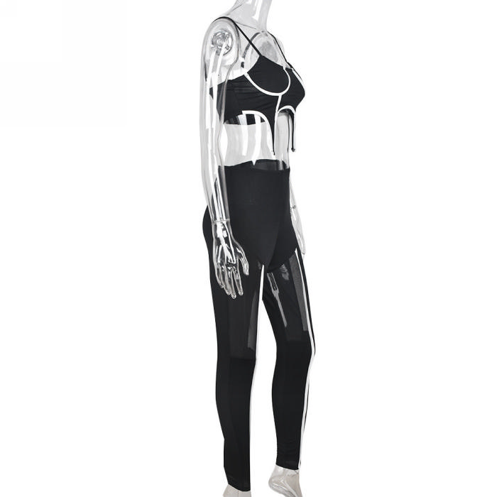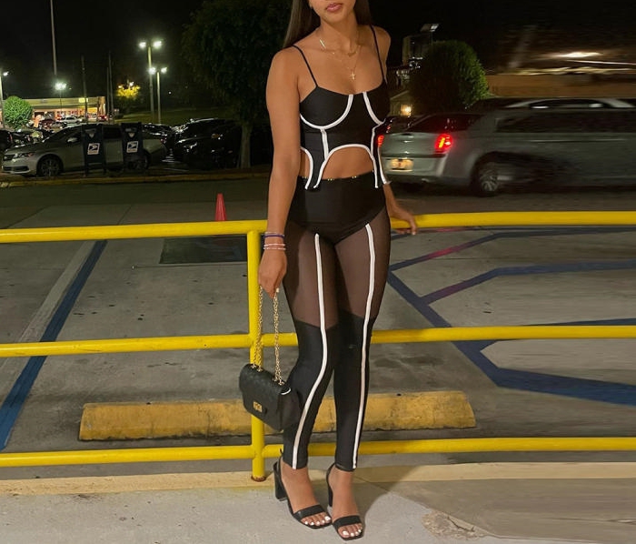 (Real Image)2022 Styles Women Fashion INS Styles Black Mesh Two Piece SuitSKU: #CF59091-1