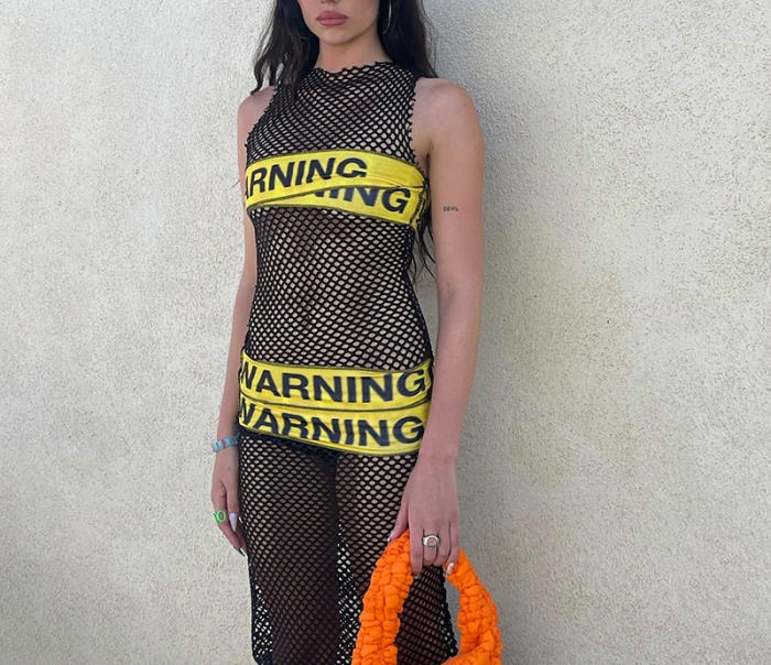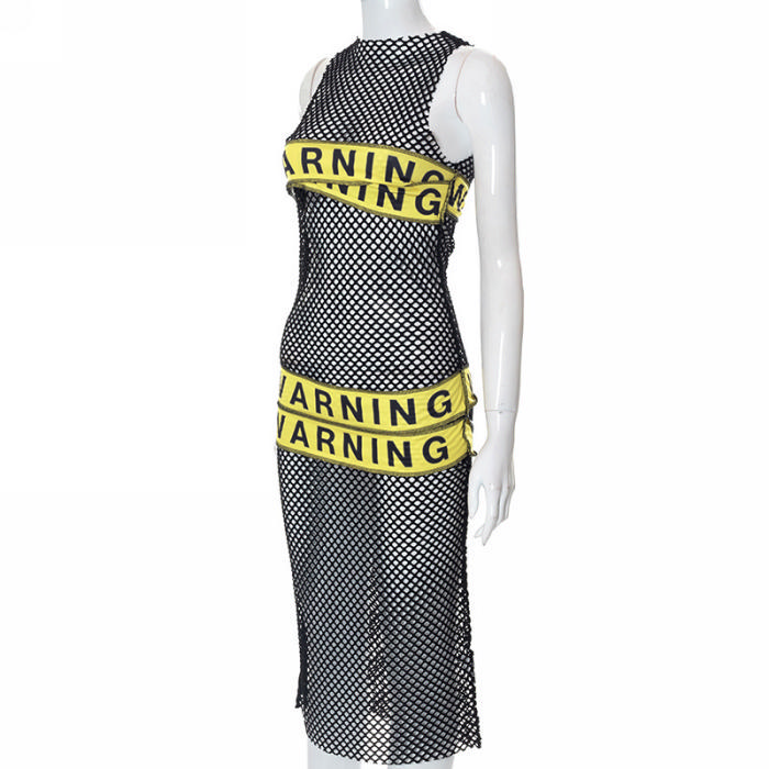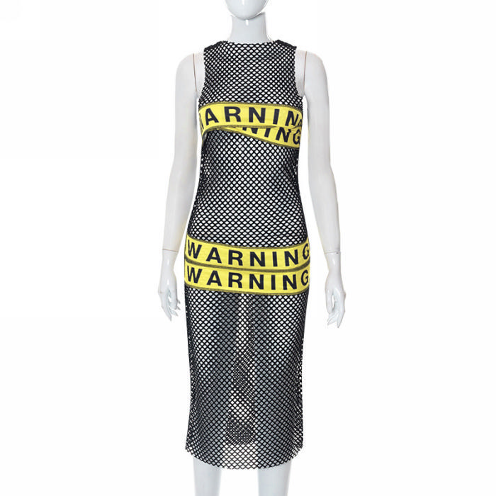 (Real Image)2022 Styles Women Fashion INS Styles Black Net Hollow Midi DressSKU: #CF68039-1