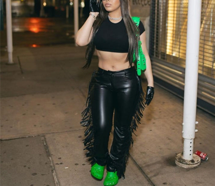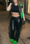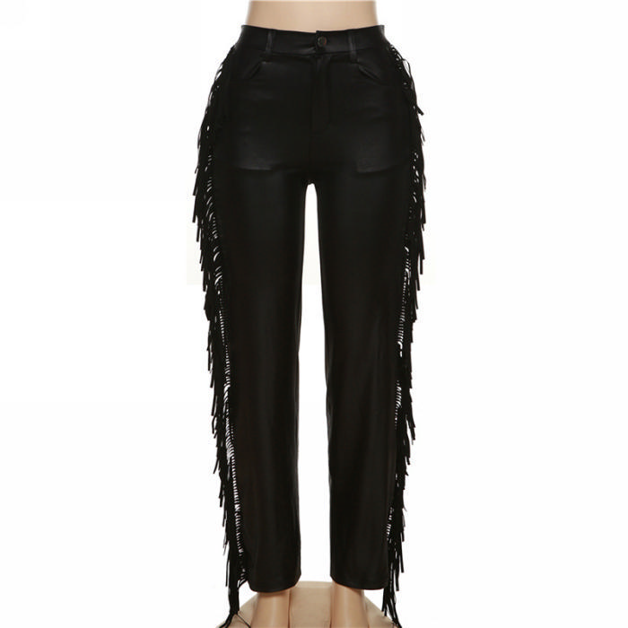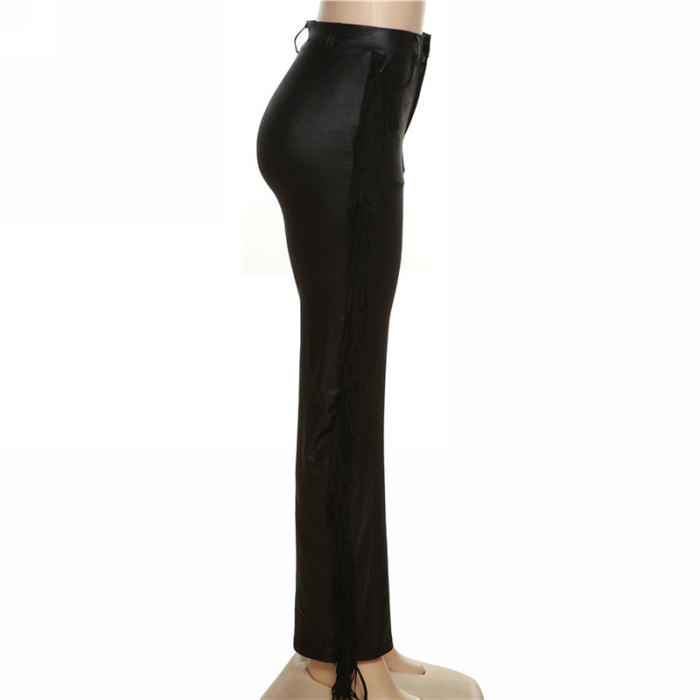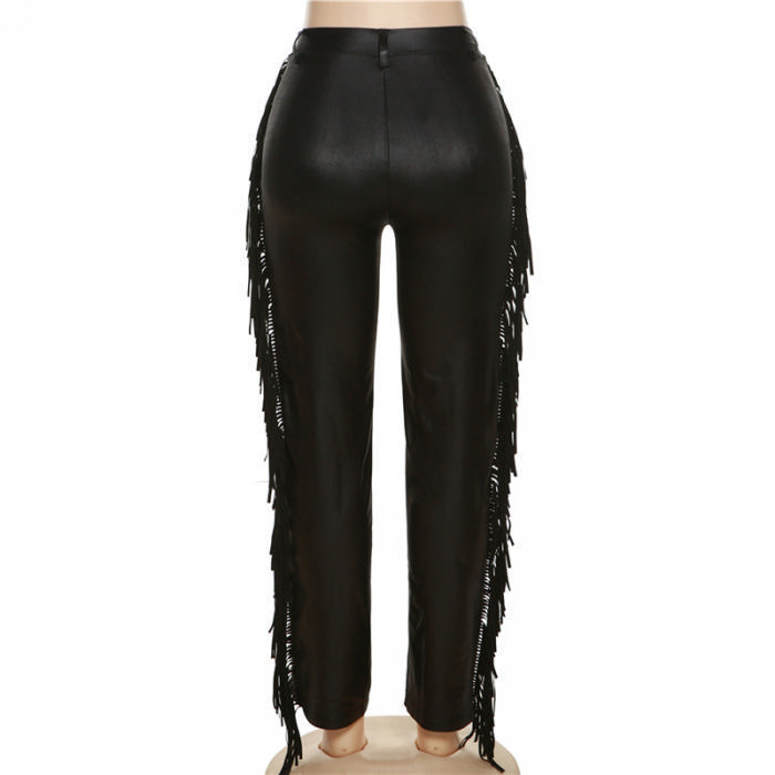 (Real Image)2022 Styles Women Fashion INS Styles Black PU Double Tassel Long PantsSKU: #CF49850-1