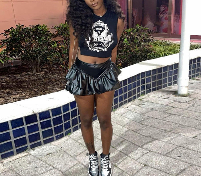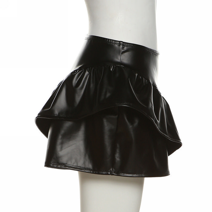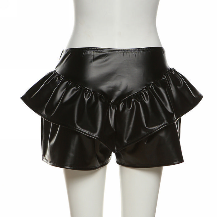 (Real Image)2022 Styles Women Fashion INS Styles Black PU Ruffle Short PantsSKU: #CF49830-1
