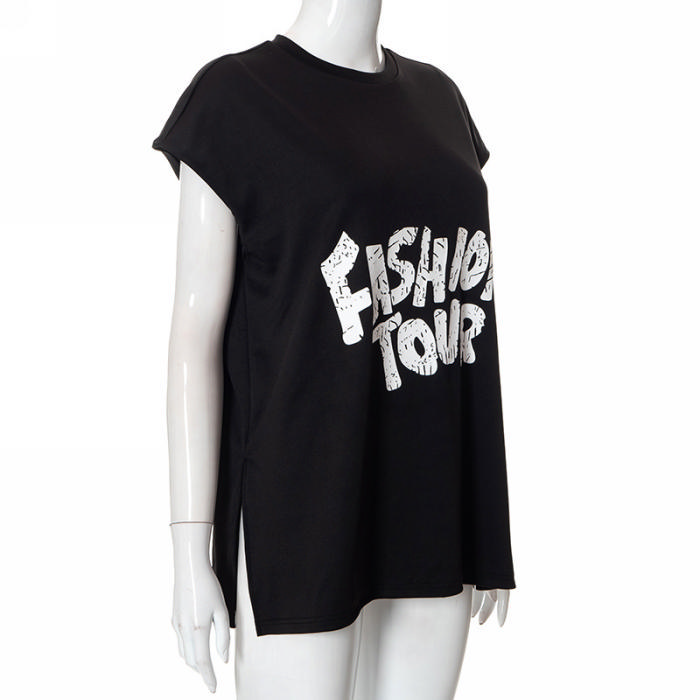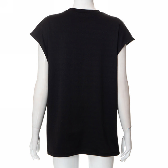 (Real Image)2022 Styles Women Fashion INS Styles Black Print TeeSKU: #CF47109-1