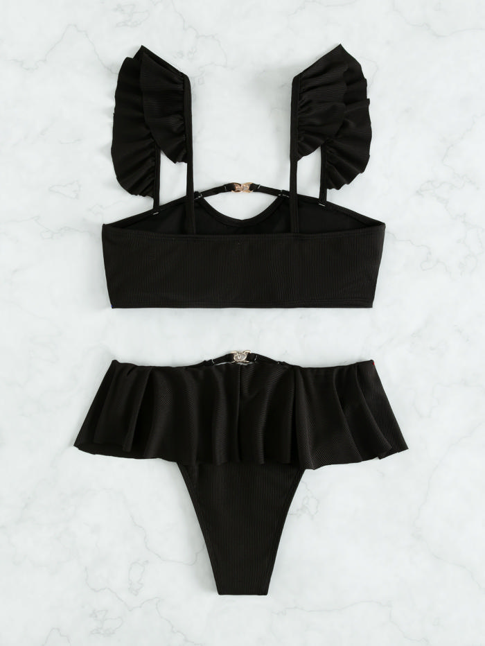 (Real Image)2022 Styles Women Fashion INS Styles Black Rib Bikini SetSKU: #OEM6522-1