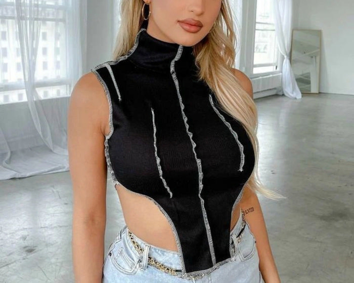(Real Image)2022 Styles Women Fashion INS Styles Black Sleeveless TopsSKU: #CF59076-1