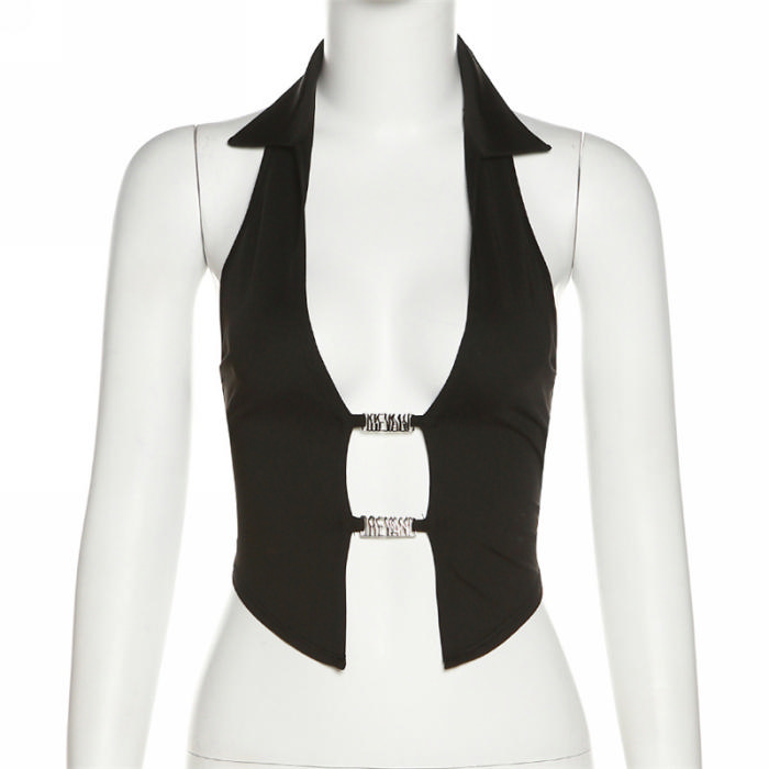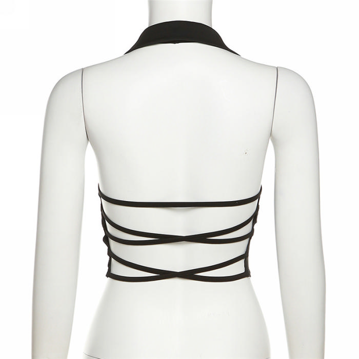 (Real Image)2022 Styles Women Fashion INS Styles Black Tie TopsSKU: #CF49799-1