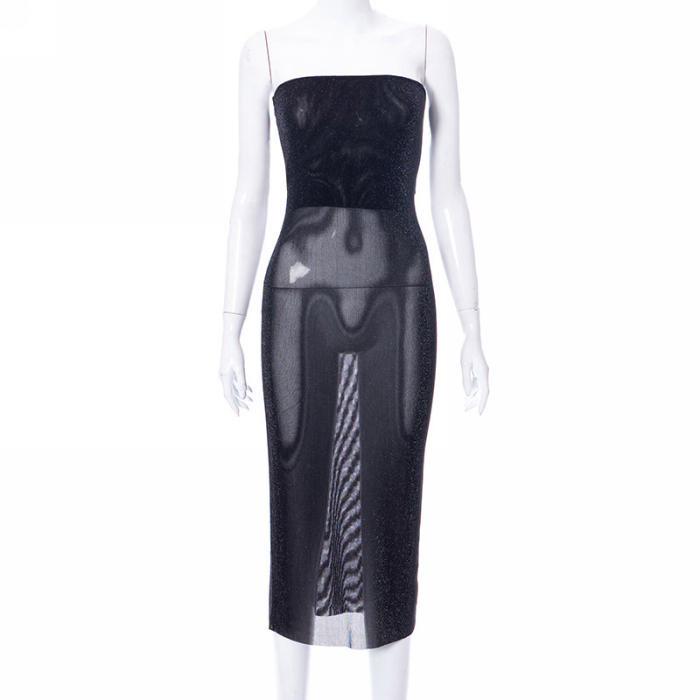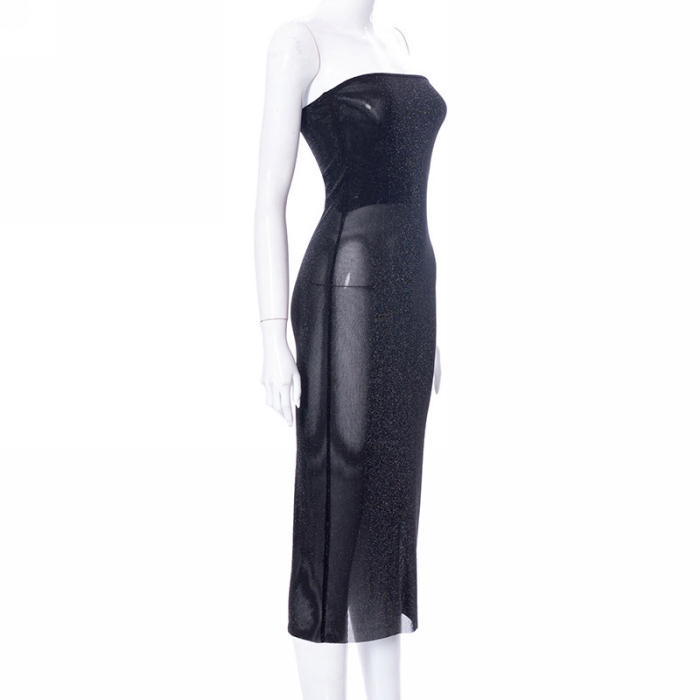 (Real Image)2022 Styles Women Fashion INS Styles Black Tube Midi DressSKU: #CF73001-1