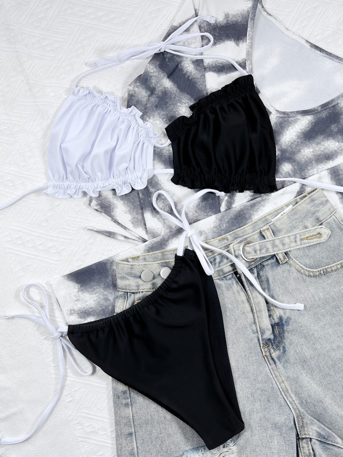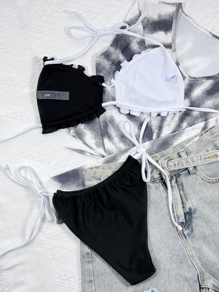 (Real Image)2022 Styles Women Fashion INS Styles Black&White Contrast Color Bikini SetSKU: #CF55060-1