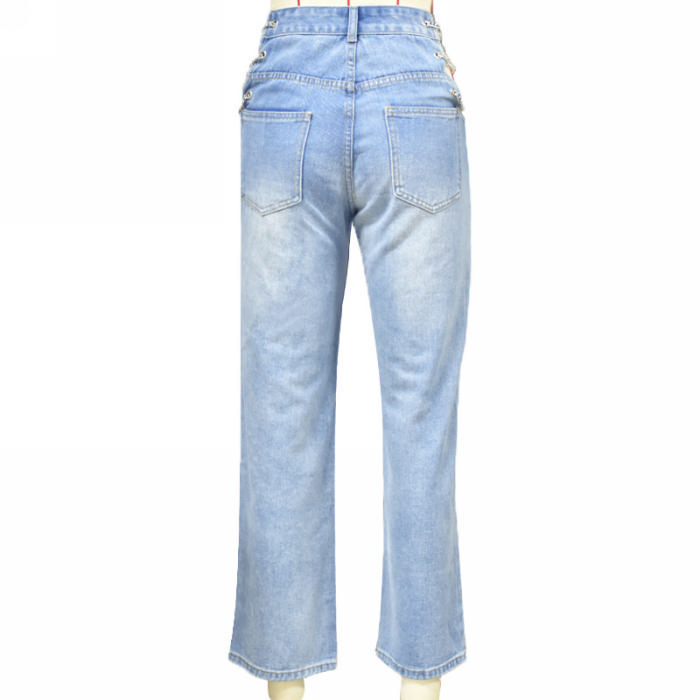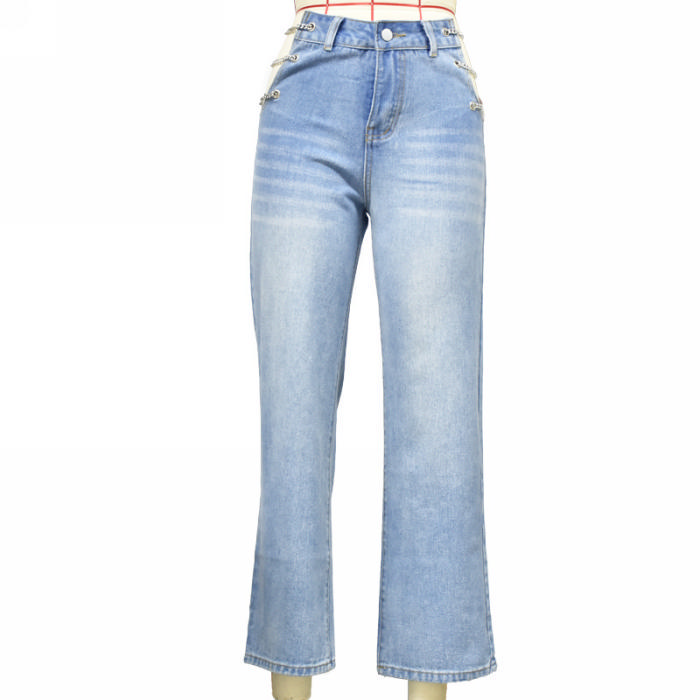 (Real Image)2022 Styles Women Fashion INS Styles Blue Long PantsSKU: #CF59156-1