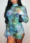(Real Image)2022 Styles Women Fashion INS Styles Blue Mesh Print Long Sleeve Mini DressSKU: #CF68075-1
