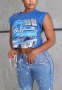 (Real Image)2022 Styles Women Fashion INS Styles Blue Print TeeSKU: #CF49727-1