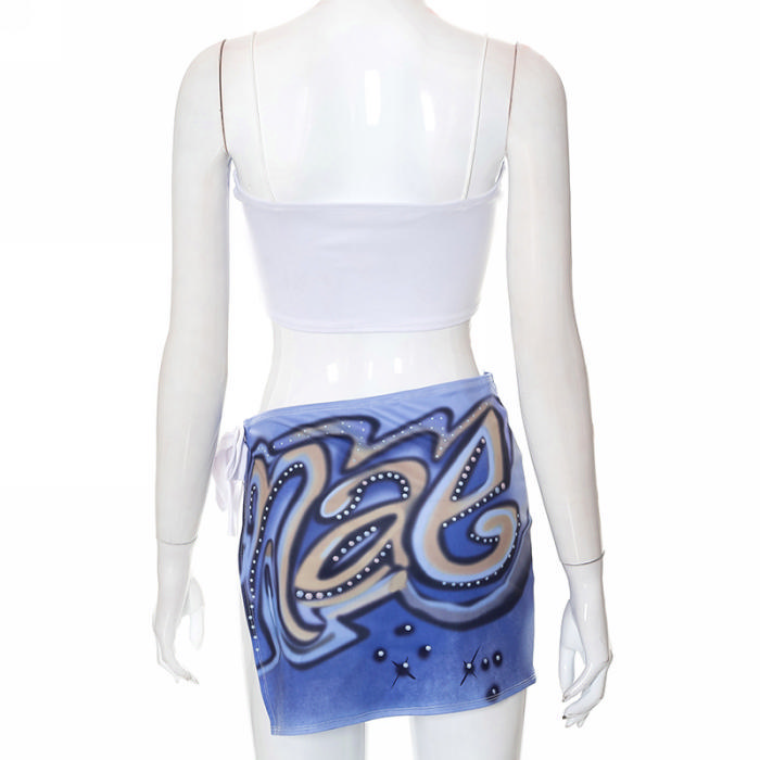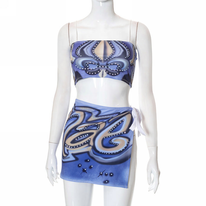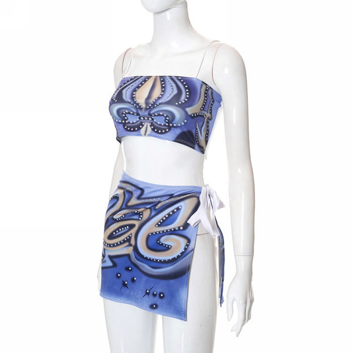 (Real Image)2022 Styles Women Fashion INS Styles Blue Print Two Piece DressSKU: #CF68083-1