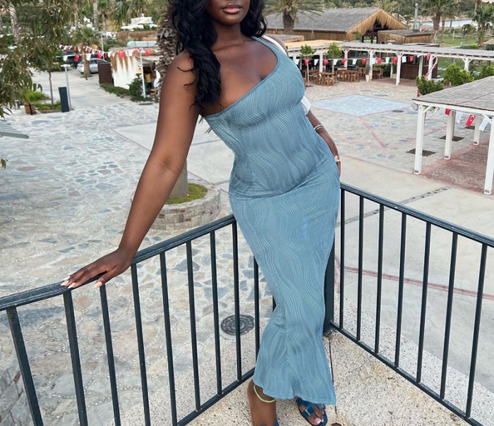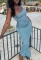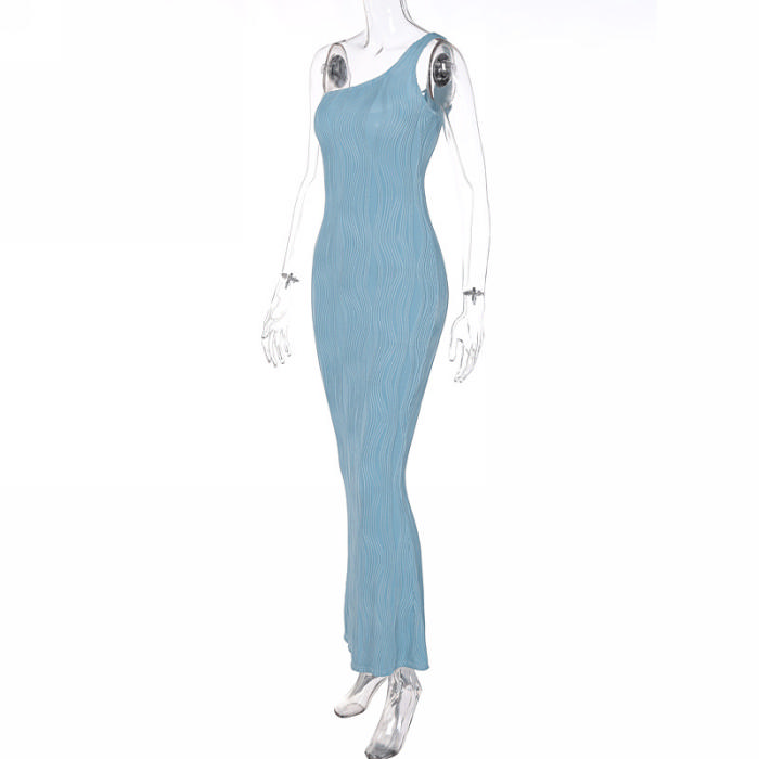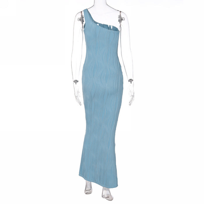 (Real Image)2022 Styles Women Fashion INS Styles Blue Single Shoulder Maxi DressSKU: #CF22717-1