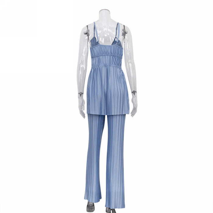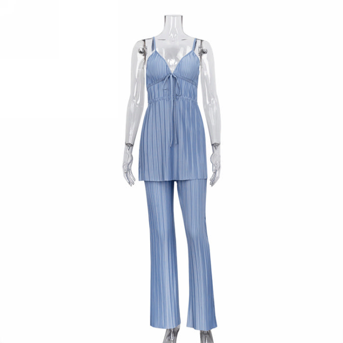 (Real Image)2022 Styles Women Fashion INS Styles Blue Solid Color Two Piece SuitSKU: #CF72016-1