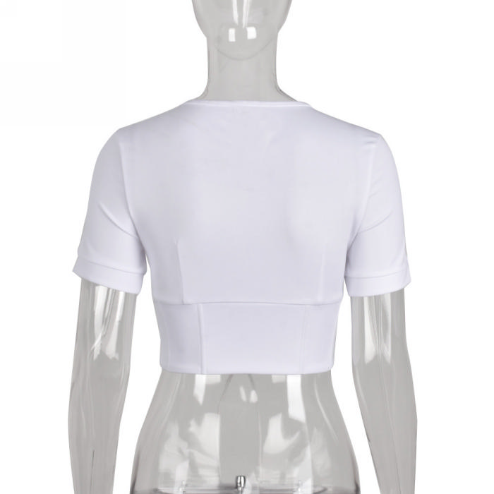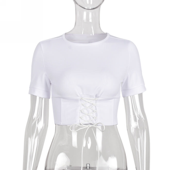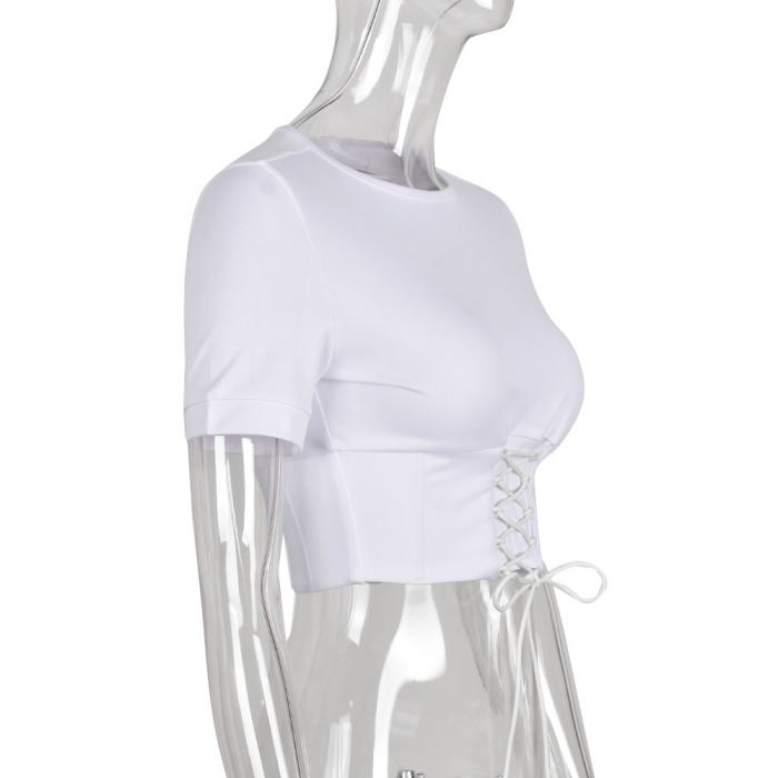 (Real Image)2022 Styles Women Fashion INS Styles Bottom Lace Up Short Sleeve TeeSKU: #CF59084-1