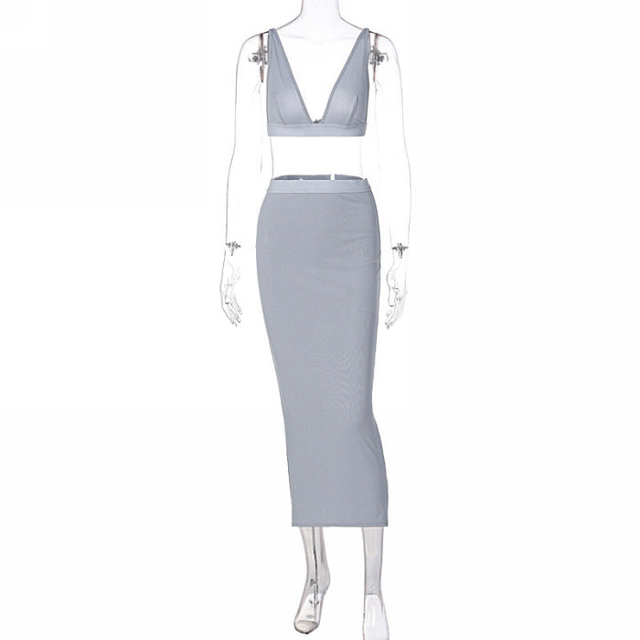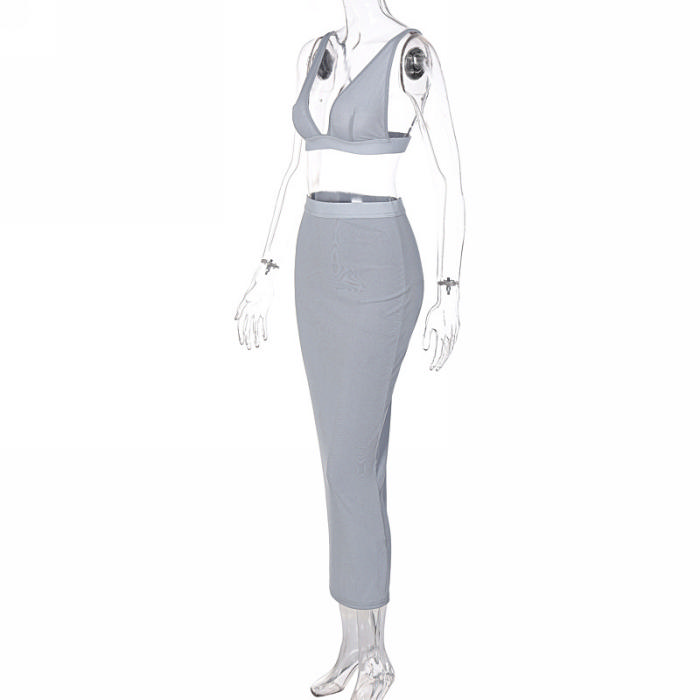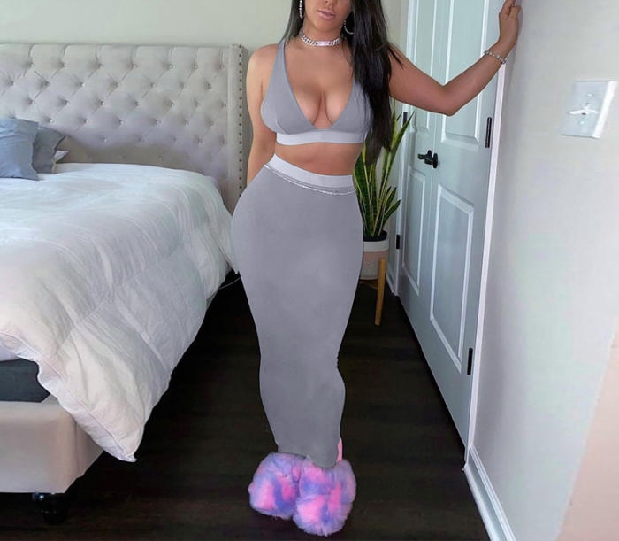 (Real Image)2022 Styles Women Fashion INS Styles Bra+Maxi Skirts Two Piece DressSKU: #CF22709-1