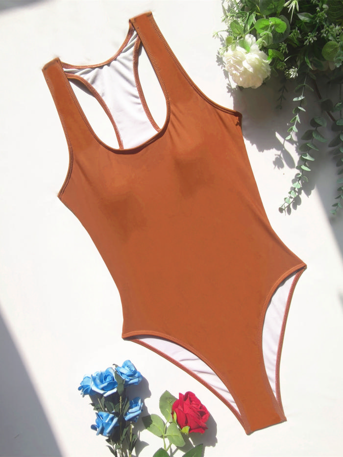 (Real Image)2022 Styles Women Fashion INS Styles Brown One Piece SwimwearSKU: #CF60067-1